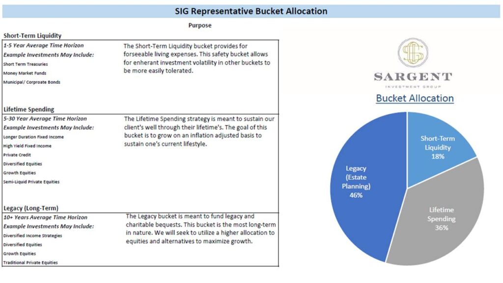 SIG focuses on three buckets for the financial needs of our clients; Short-Term Liquidity, Lifetime Spending and Legacy (Estate Planning).
